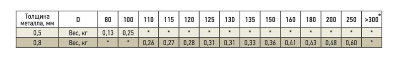Диаметр дымохода, мм