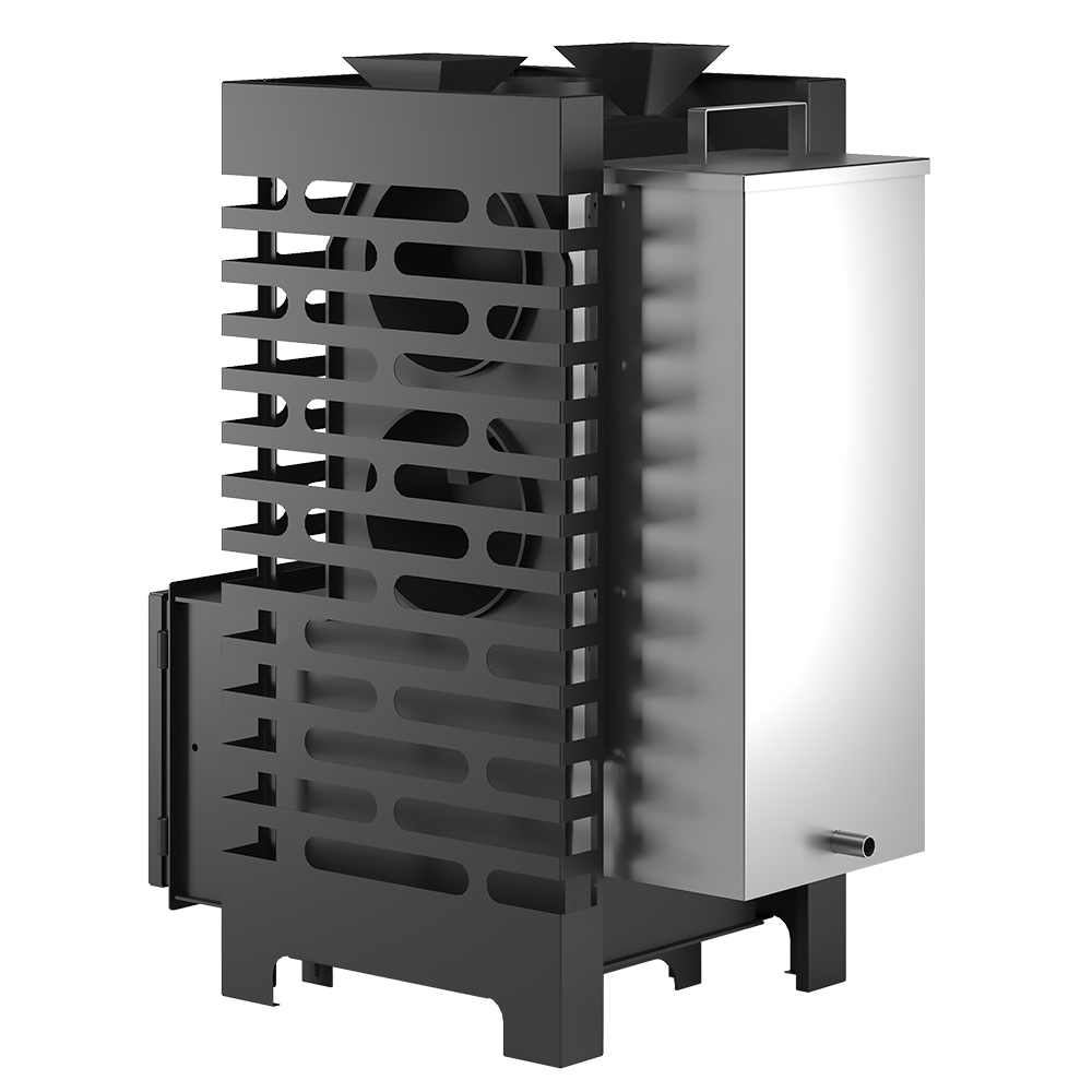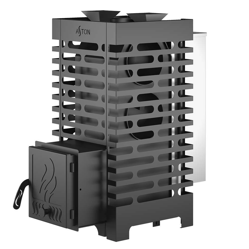 Печь ASTON 20 "АКВА" с дверцей из особо прочной котловой стали марки 09Г2С предназначена для установки в парную объемом до 22 м3. Стальной кожух значительно ускоряет нагревание воздуха, вмещает в себя до 160 кг камней для бани. Глубокая невентилируемая каменка-труба толщиной 4 мм выполняет роль пламегасителя. Универсальный парогенератор проходит через каменку-трубу, обеспечивая получение мелкодисперсного пара. Дверца из особо прочной котловой стали марки 09Г2С позволяет обслуживать топку и регулировать скорость горения топлива в печи. Колосниковая решетка из литьевого чугуна обеспечивает равномерное и мощное горение дров.