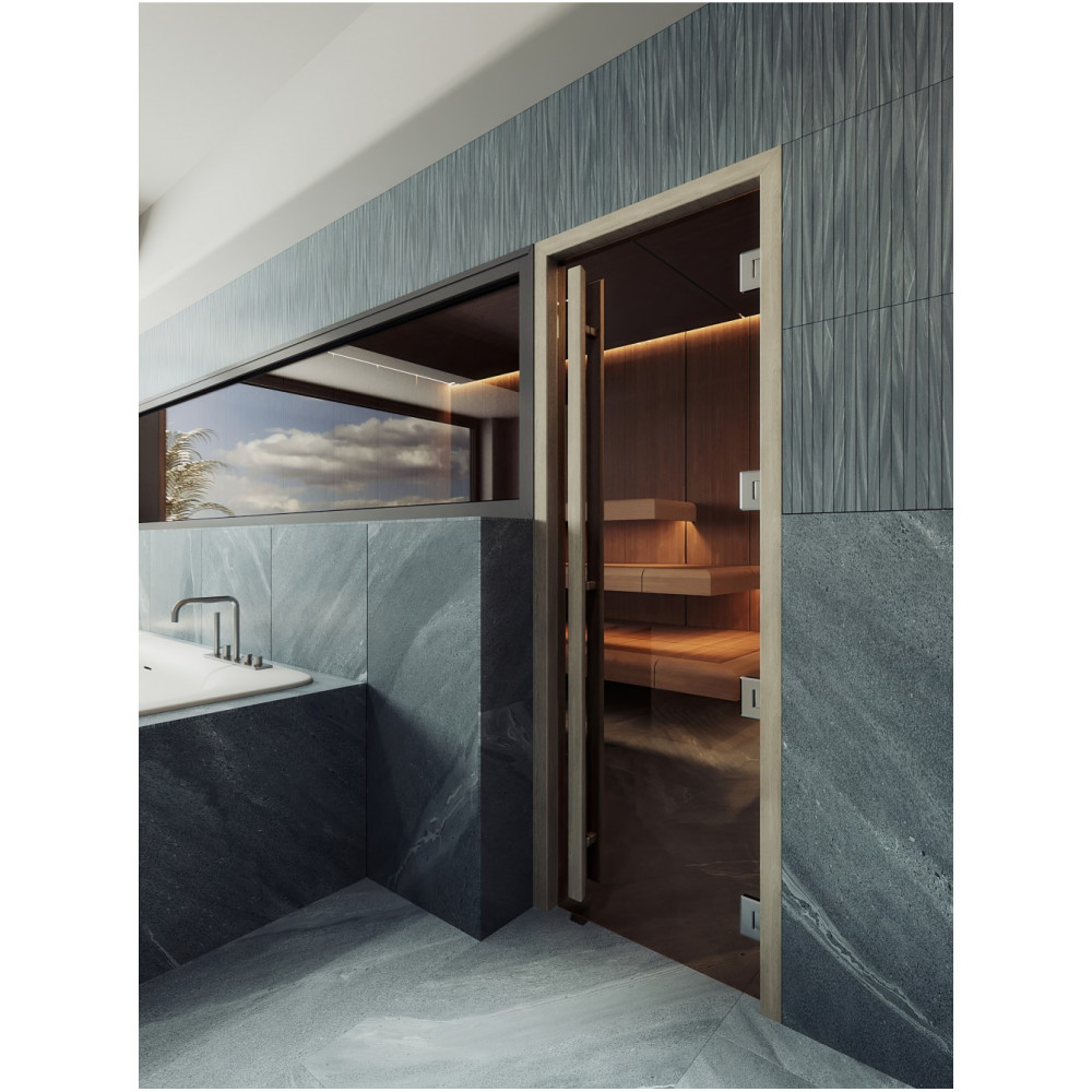Дверь для бани и сауны Престиж Легенда Маятниковая Бронза матовая 2000х800 изготовлена из закалённого стекла,