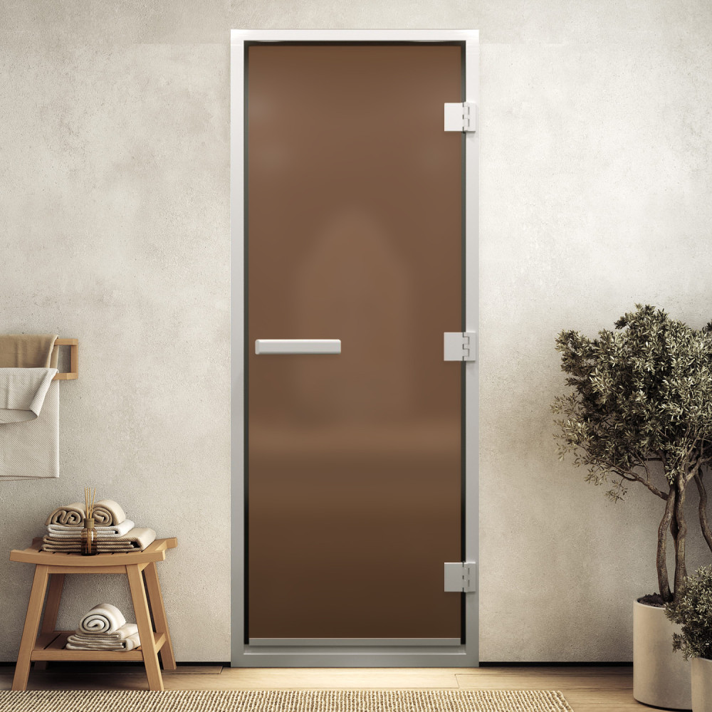 Дверь для хаммама "Бронза матовая" 2000х600 изготовлена из закалённого стекла, что делает дверь максимально безопасной.