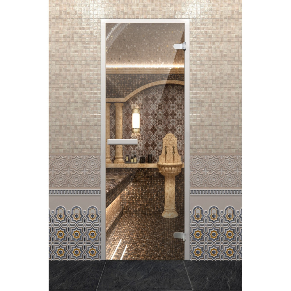 Дверь для хаммама "Прозрачное лайт" 1900х700 изготовлена из закалённого стекла, что делает дверь максимально безопасной.