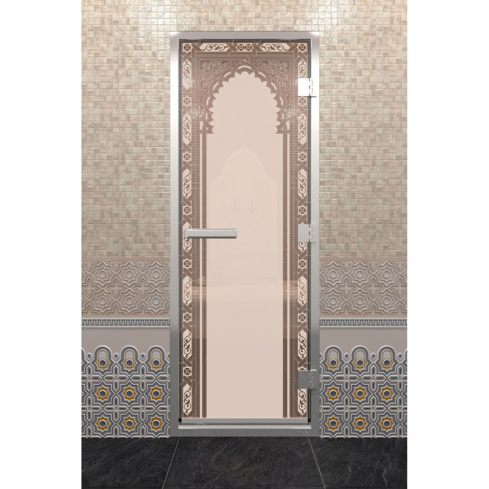 Дверь для хаммама "Восточная арка бронза матовая" 2000х800 изготовлена из закалённого стекла, что делает дверь максимально безопасной.