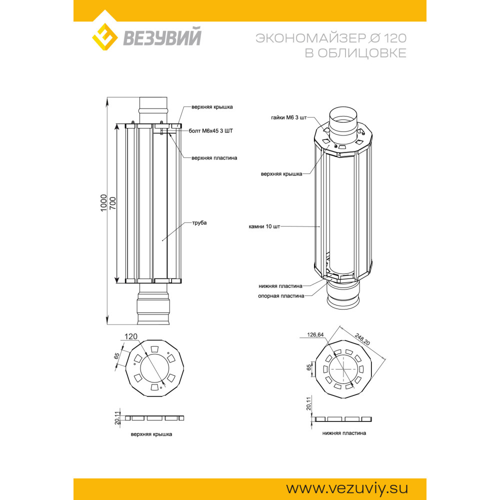 Экономайзер D 120 "Пироксенит" служит для дополнительной конвекции воздуха в парной, ламели из натурального камня снижают интенсивность «жесткого» тепла. Устанавливается в качестве стартового элемента дымохода.