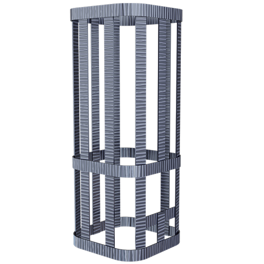 Сетка на трубу для Ураган (250х250х750) GFS ЗК 18/25/30, Гроза 18, Гром 30 под шибер из стальной кованой полосы толщиной 4мм предназначена для увеличения теплоемкости печи за счет дополнительной массы камней, загруженных в сетку. Также это значительно уменьшает интенсивность «жесткого» тепла от первого сегмента дымохода.