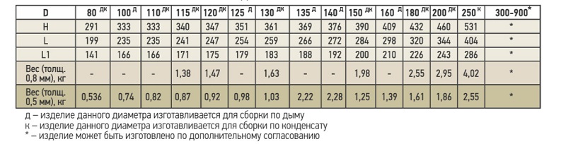 Диаметр дымохода, мм