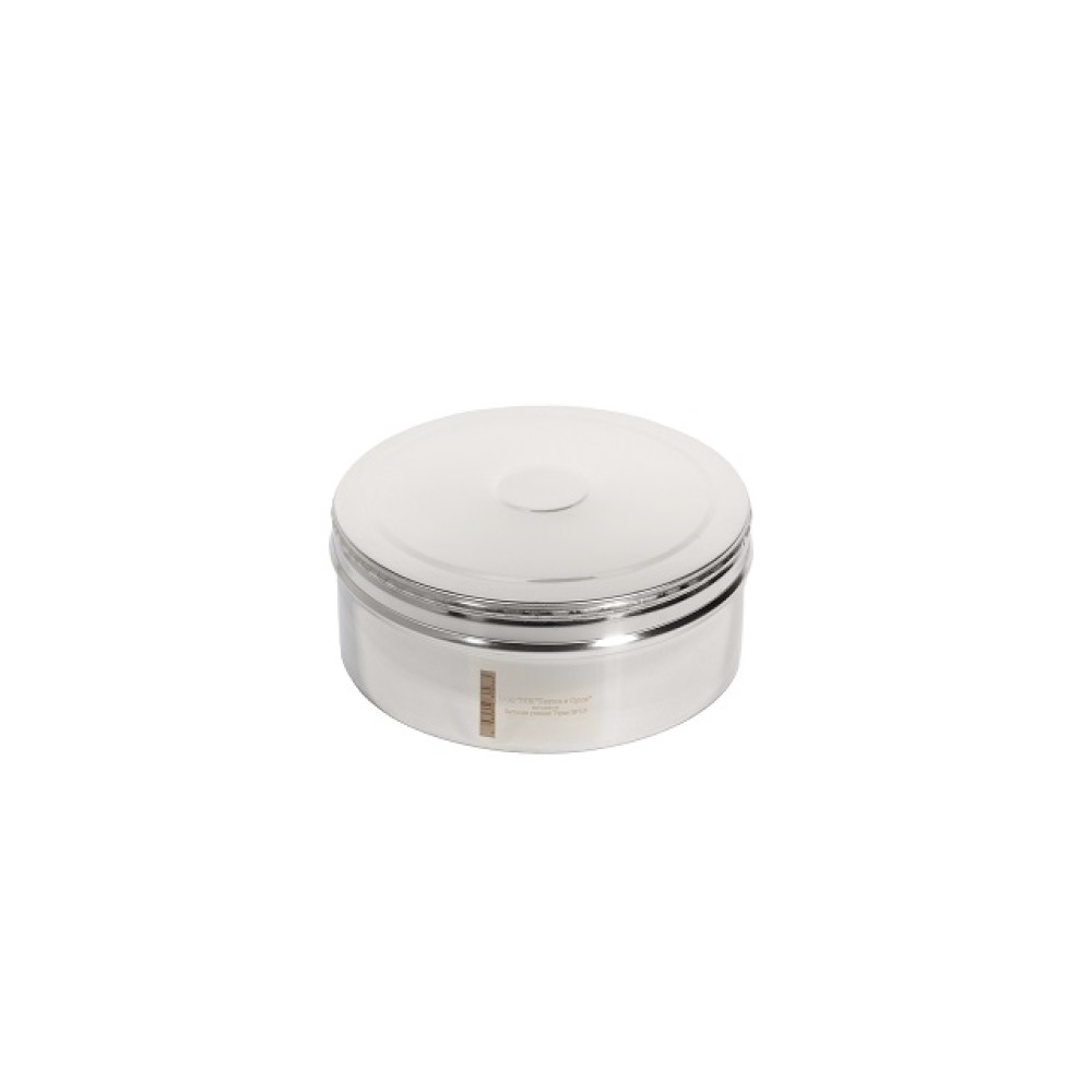 Заглушка ревизии Термо ЗРТ-Р (304-0.5) D210 представляет собой трубный элемент, перекрытый пластиной. Устанавливается на тройник для контроля и сбора сажи и других фрагментов, попадающих в дымовой канал. Заглушки подбираются для тройников Термо по наружному диаметру. Закрепляются на тройнике при помощи трубного хомута.