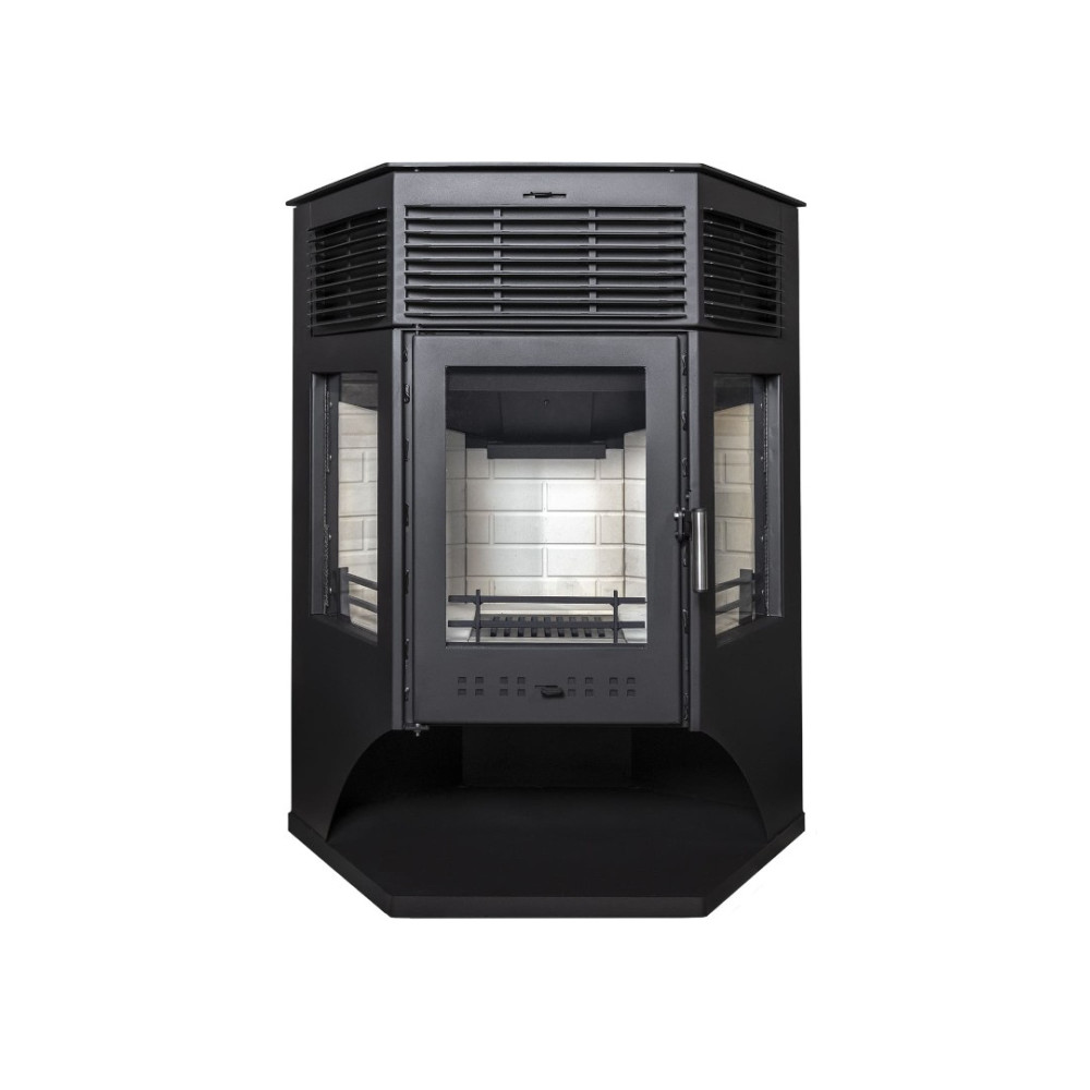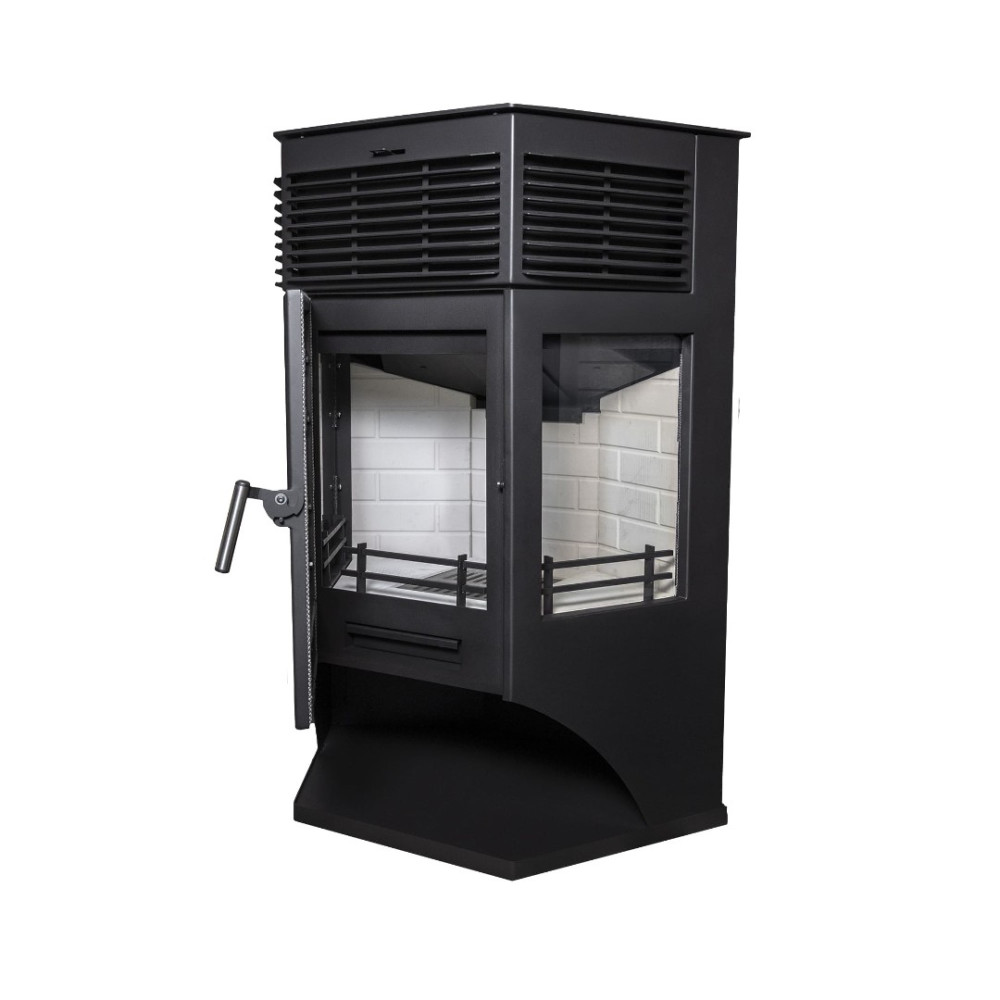 Печь-камин Москва 12 может размещаться у стены либо в углу комнаты. Универсальное подключение дымохода (сверху либо сзади). Печь оснащена призматической дверцей с крупными стеклами. Максимальная длина дров 500 мм. Идеально подходит для обогрева помещения площадью до 120 м2.