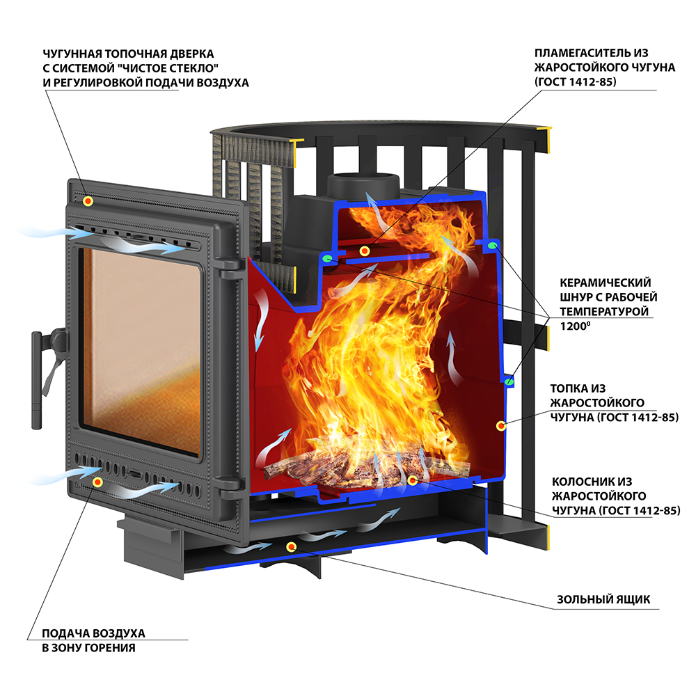 Банная чугунная печь Везувий Легенда Ковка 22(505) рассчитана на использование в парных объемом 12-24 м3. Чугунная топка состоит из трех элементов, соединенных между собой болтами. Герметичность стыков между ними обеспечивается жаропрочным керамическим шнуром. Сетчатая каменка Ковка (из рельефных стальных полос, покрытых термостойкой краской и патиной Бронза) позволяет закладывать большой объем камней, минимизирует ИК-излучение от металла. Топка обеспечивает быстрый нагрев камней, которые, в свою очередь, хорошо аккумулируют тепло. Модель имеет выносной топочный тоннель и снабжена чугунной дверцей со стеклом.