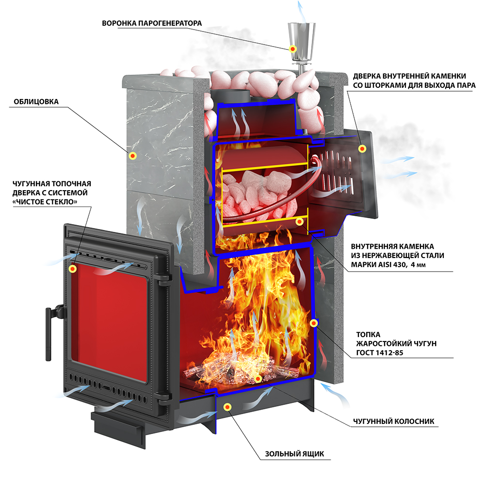 Материал закрытой каменки Нержавеющая сталь (AISI 430)