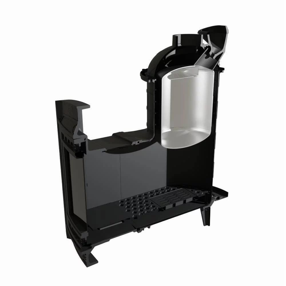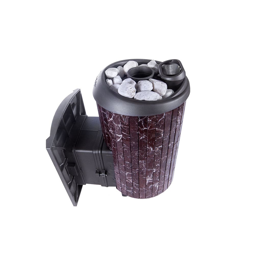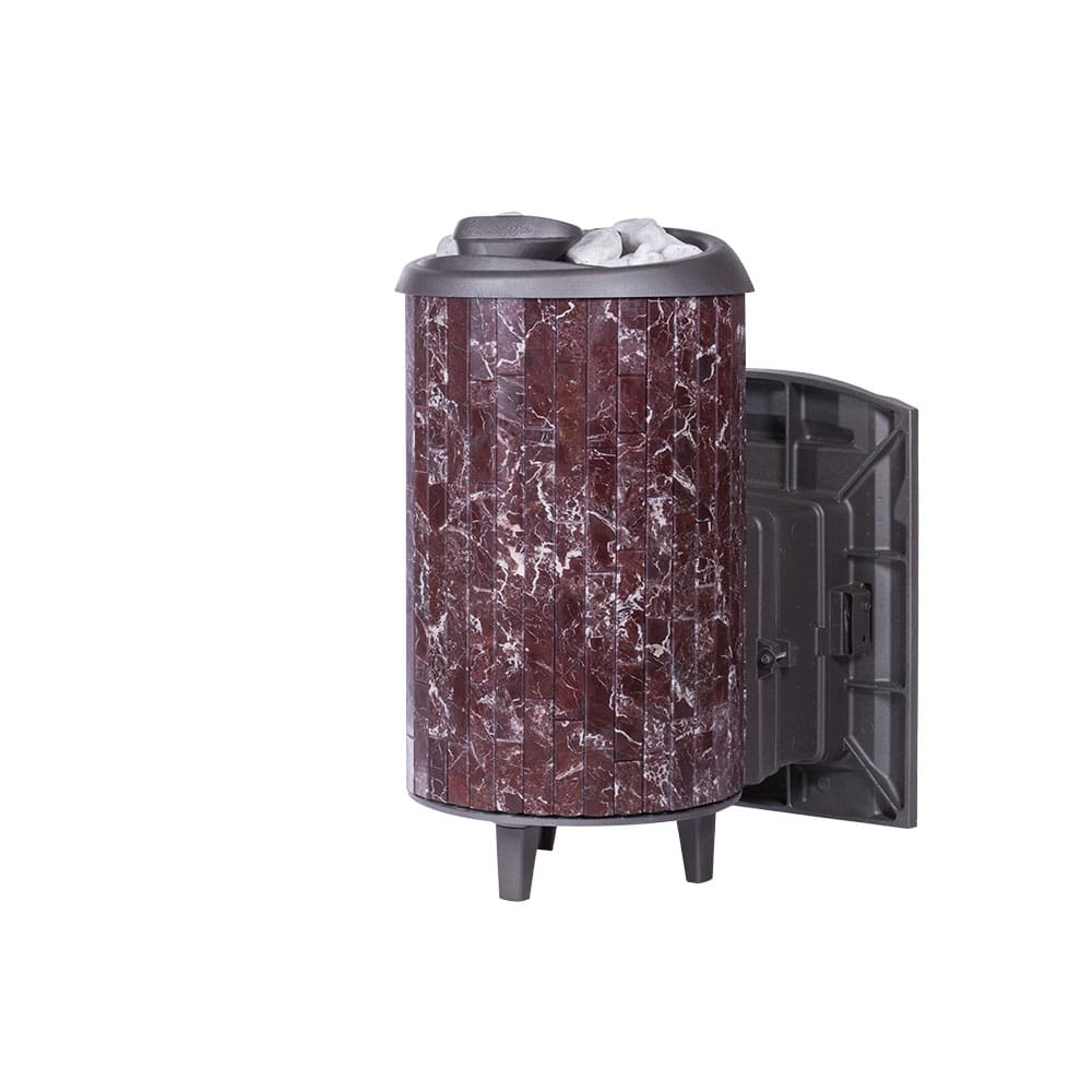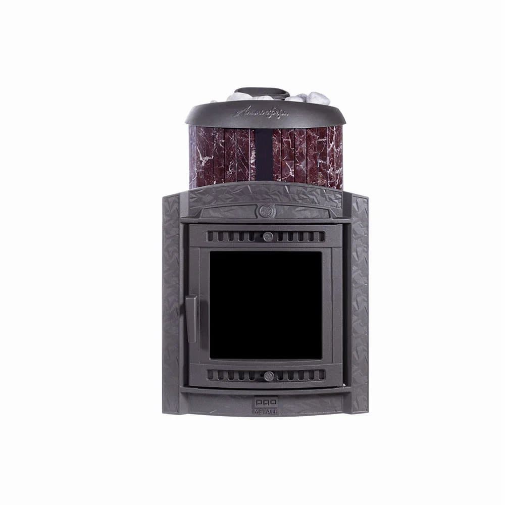 Дровяная печь Атмосфера L в ламелях из натурального камня Россо Леванто наборный - практичная и компактная модель. Ламели из натурального камня по периметру внешней каменки не только обладают хорошими теплонакопительными свойствами, но и придают печи оригинальный внешний вид. При изготовлении печи используется жаропрочный чугун с добавлением хрома. Закрытая каменка выполнена из стали марки AISI 439. Толщина чугунных стенок топочной камеры составляет 9-11 мм, каменки 3 мм. Большая масса камней и закрытая каменка позволяют получить режим русской бани и сохранять температуру долгое время. Толщина жаростойкого стекла топочной дверцы составляет 4 мм.
