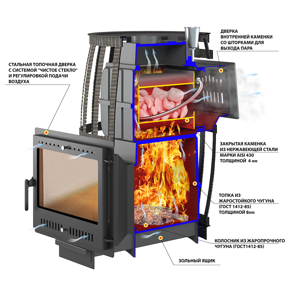 Материал закрытой каменки Нержавеющая сталь (AISI 430)