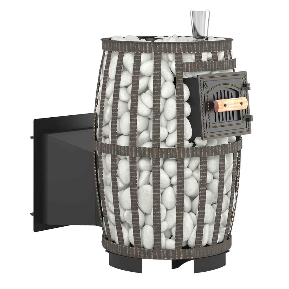 Банная чугунная печь Везувий Легенда Русский пар Ковка 24 Панорама М рассчитана на использование в парных объемом 12-24 м3. Все элементы топки отлиты из жаропрочного чугуна и соединены между собой с помощью болтового соединения через термостойкий шнур и герметик. Печь отличается наличием закрытой каменки, в которой камни прогреваются до температуры 600°С, что позволяет создать в парилке наиболее благоприятный микроклимат, не пересушивая и не перегревая воздух. Вода подается в центральную часть каменки через воронку. При подаче воды дверцу каменки следует держать открытой для выхода пара. Сетчатая каменка Ковка (из рельефных стальных полос, покрытых термостойкой краской и патиной Бронза) позволяет закладывать большой объем камней, минимизирует ИК-излучение. Топка обеспечивает быстрый нагрев камней, которые, в свою очередь, хорошо аккумулируют тепло. Модель имеет выносной топочный тоннель и снабжена стальной дверцей со стеклом.
