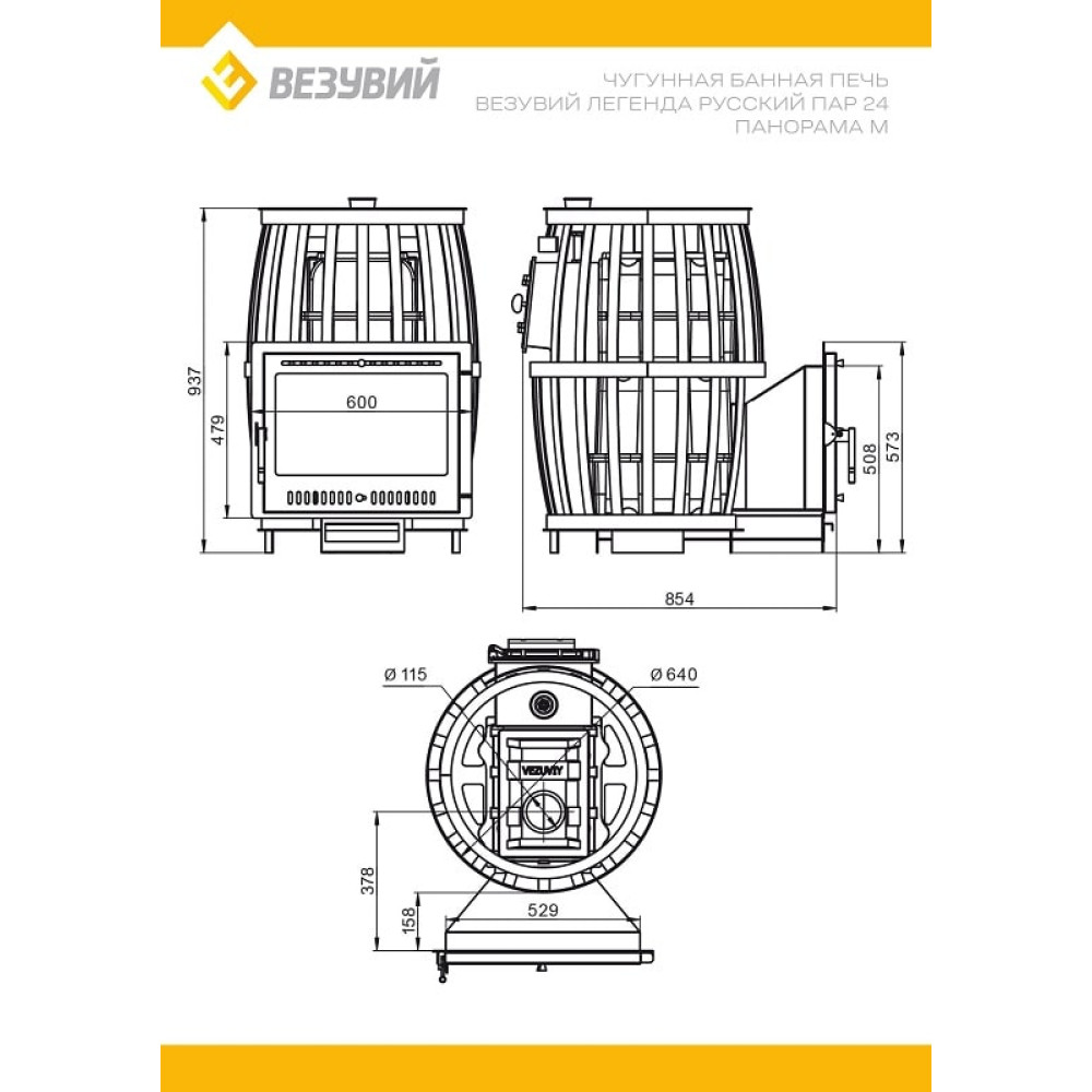 Печь ВЕЗУВИЙ Легенда Русский пар Ковка 24 Панорама "М"