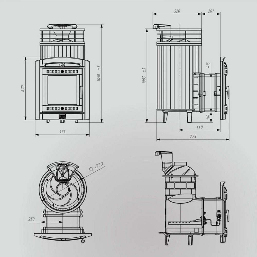 Печь для бани Атмосфера L Окаменевшее дерево ламель+сетка с газовой горелкой - практичная и компактная модель. Ламели из натурального камня по периметру внешней каменки не только обладают хорошими теплонакопительными свойствами, но и придают печи оригинальный внешний вид. При изготовлении печи используется жаропрочный чугун с добавлением хрома. Закрытая каменка выполнена из стали марки AISI 439. Толщина чугунных стенок топочной камеры составляет 9-11 мм, каменки 3 мм. Большая масса камней и закрытая каменка позволяют получить режим русской бани и сохранять температуру долгое время. Толщина жаростойкого стекла топочной дверцы составляет 4 мм.