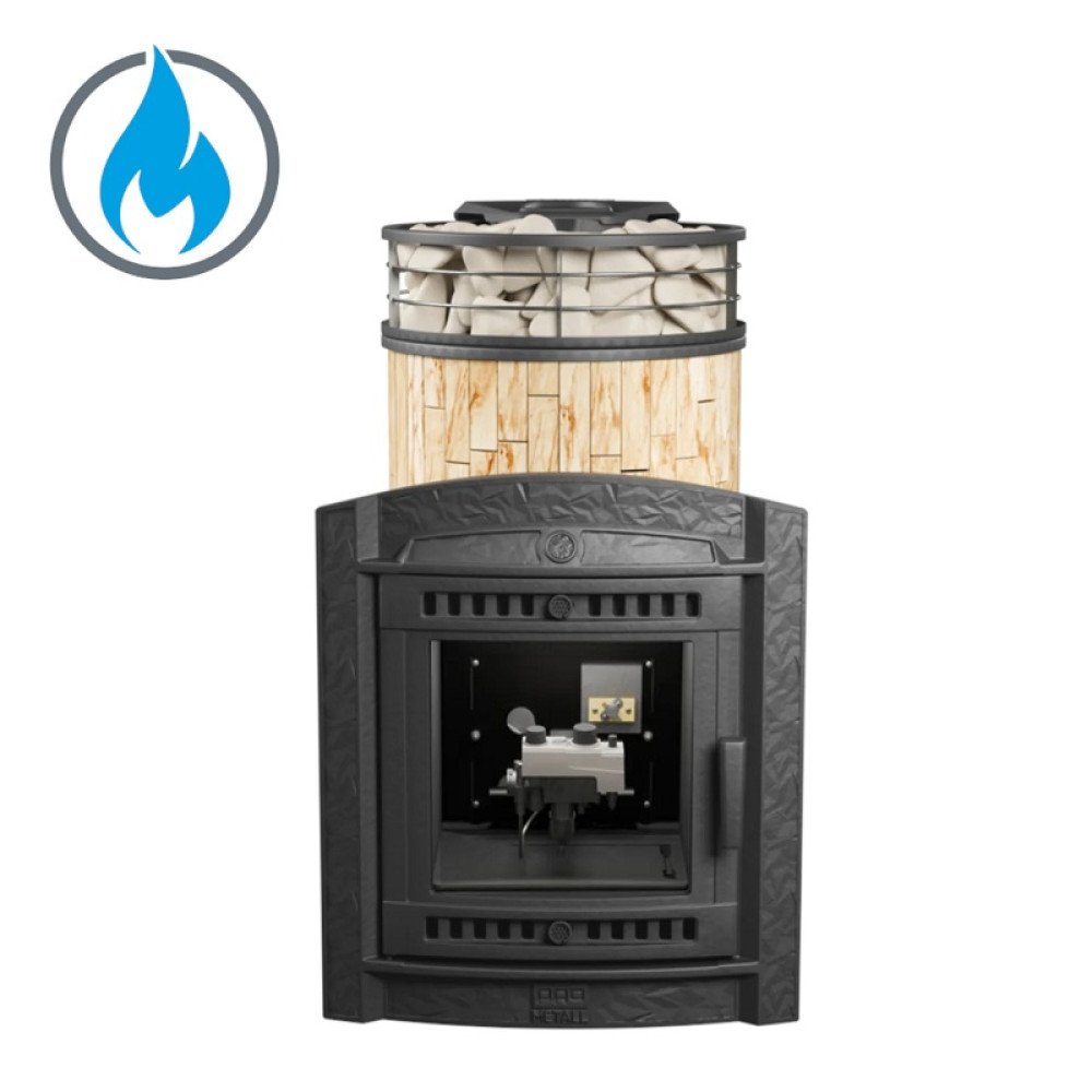 Печь для бани Атмосфера L Окаменевшее дерево ламель+сетка с газовой горелкой