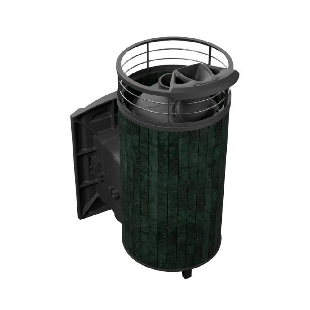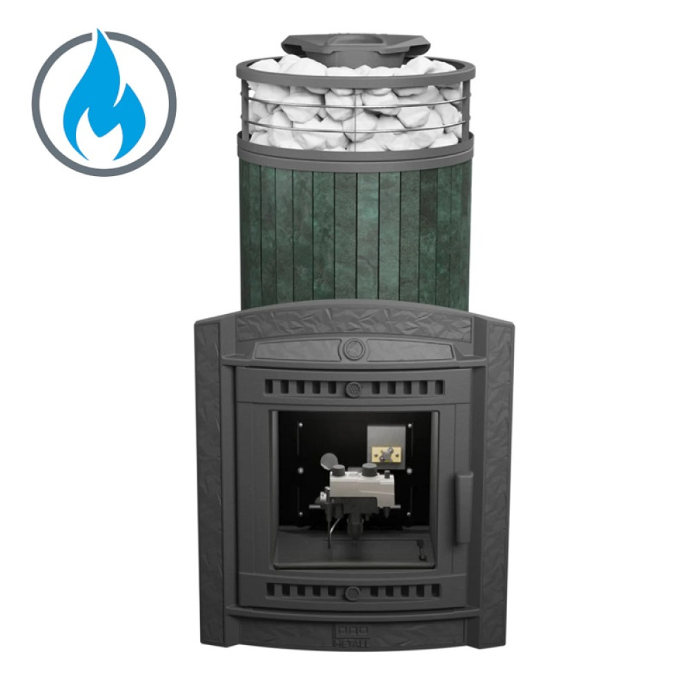 Печь для бани Атмосфера XL Верде Гватемала ламель+сетка с газовой горелкой - модель с увеличенной каменкой и повышенной производительностью. Ламели из натурального камня по периметру внешней каменки не только обладают хорошими теплонакопительными свойствами, но и придают печи оригинальный внешний вид. При изготовлении печи используется жаропрочный чугун с добавлением хрома. Закрытая каменка выполнена из стали марки AISI 439. Толщина чугунных стенок топочной камеры составляет 9-11 мм, каменки 3 мм. Большая масса камней и закрытая каменка позволяют получить режим русской бани и сохранять температуру долгое время. Толщина жаростойкого стекла топочной дверцы составляет 4 мм.