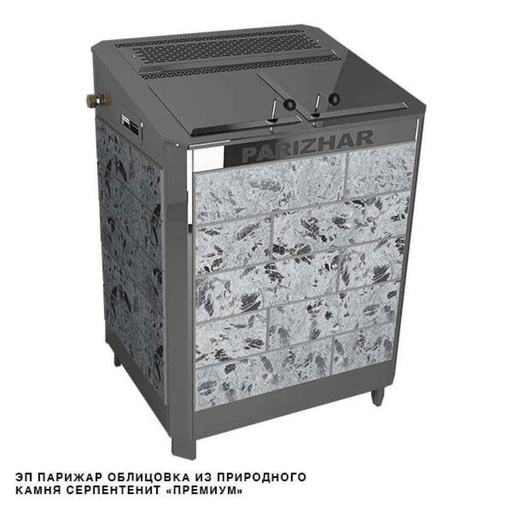 Паротермальная электрическая печь ПАРиЖАР 16 кВт серпентинит «Премиум» имеет закрытую емкость для камней, что позволяет получить перегретый мелкодисперсионный пар. Парогенератор может работать в нескольких режимах, в зависимости от мощности печи. Облицовка из серпентинита «Премиум» обеспечивает сохранение мягкого тепла долгое время. Печь изготовлена из нержавеющей стали.