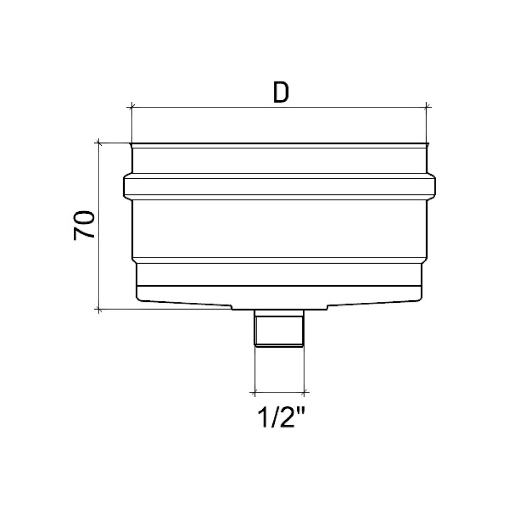 Конденсатоотвод моно КМ-Р 430-0.5 D80 устанавливается в нижней части дымохода для сбора конденсата. Состоит из трубного элемента, заглушенного пластиной с патрубком 10 мм, соединенным между собой фальцевым соединением.
