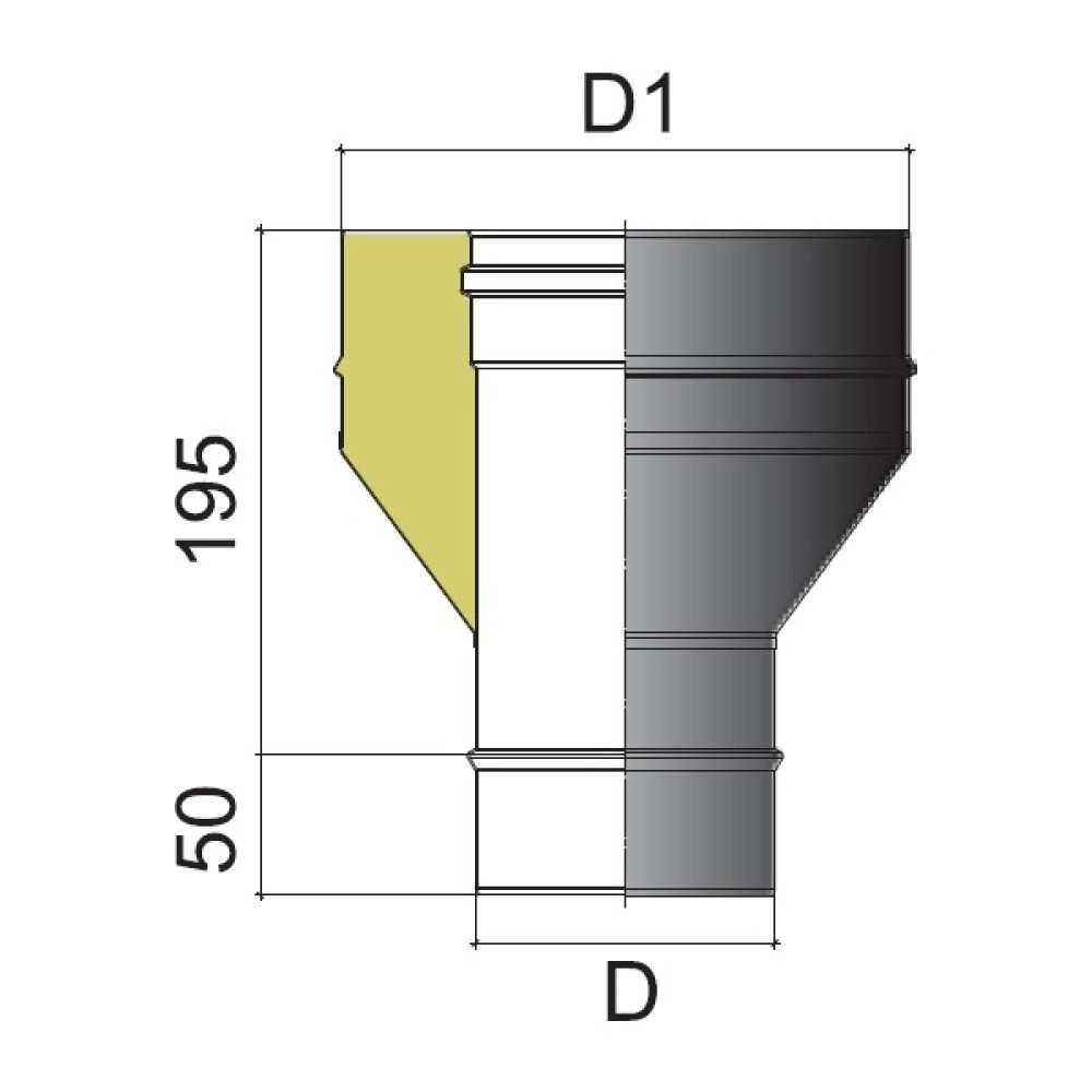 Переход Моно/Термо ПМТ-Р (304-0.8/304) D150/250 предназначен для перехода с неутепленного дымового канала Моно на утепленный Термо. Переход Моно-Термо является стартовым элементом для утепленного дымохода Термо, изолирует утеплитель трубы Термо.