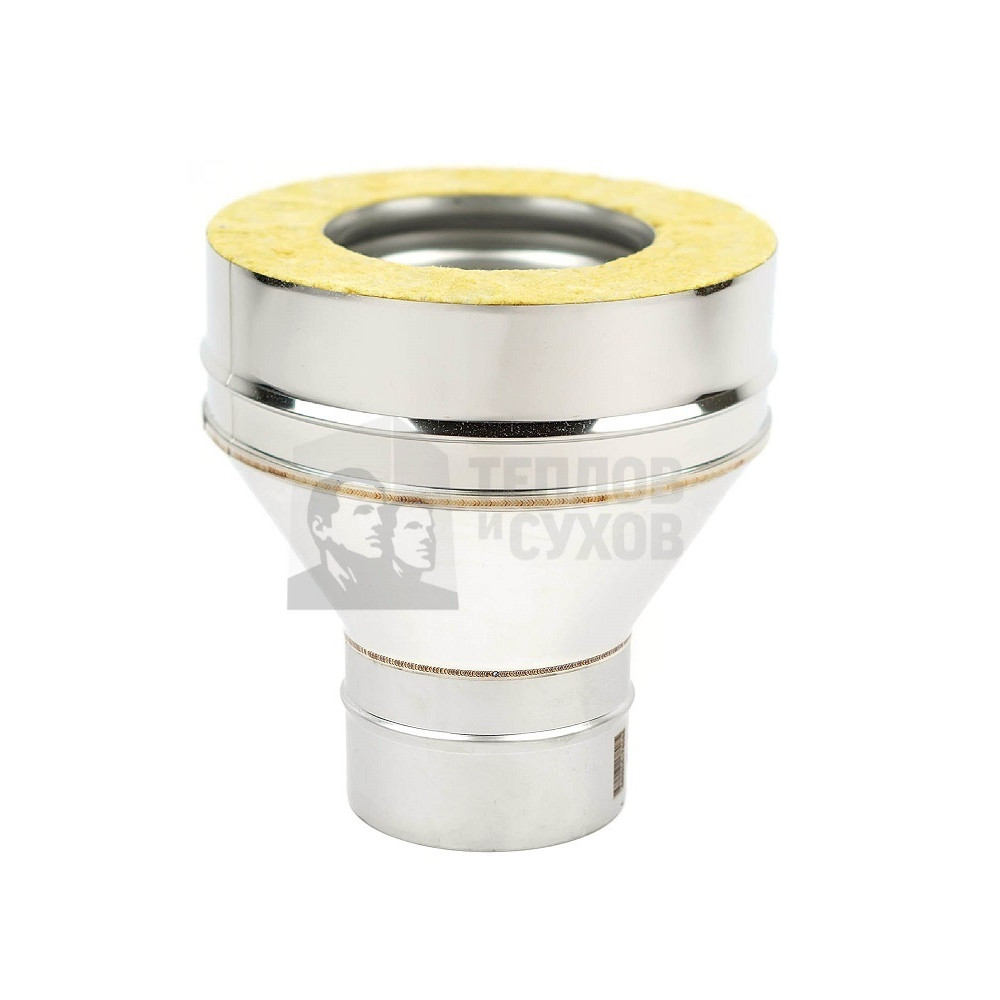 Переход Моно/Термо ПМТ-Р (304-0.8/304) D200/300 предназначен для перехода с неутепленного дымового канала Моно на утепленный Термо. Переход Моно-Термо является стартовым элементом для утепленного дымохода Термо, изолирует утеплитель трубы Термо.