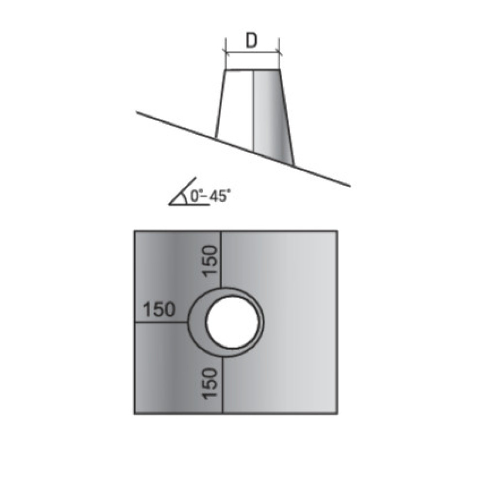Проход кровли универсальный 30° - 45° D 260-300 предназначен для перекрытия отверстия при прохождении дымохода через кровлю здания. Подбирается по диаметру наружного контура дымохода и наклону кровли. Щель между отверстием прохода кровли и трубой закрывается фартуком.